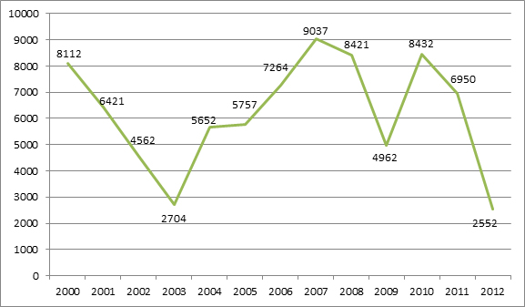 נתוני מכירת רכבי מיצובישי משנת 2000